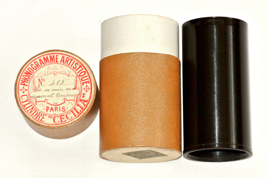 Gabin (Ferdinand Joseph Moncorgé): Elle m’a eu. Phonographe Populaire-Weichwachswalze, um 1900. Die abgebildete Dose gehört zu einem Titel aus Mignon.