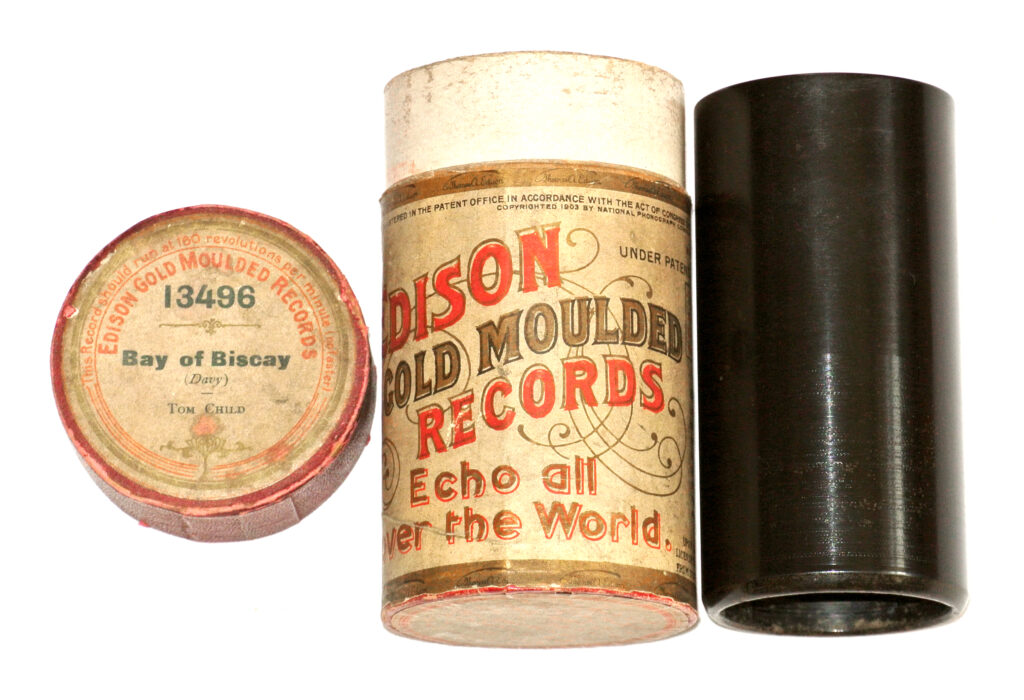Das Gedicht wurde auf die erste Hälfte einer abgeschliffenen Edison-Gusswalze der Zeit um 1903 aufgenommen. Wenn die Dose zur Walze gehört, war die ursprüngliche Aufnahme Kat.-Nr. 13496 „Bay of Biscay“. Mit dem Abschleifen und Bespielen von Hartgusswalzen riskierte man die schnelle Zerstörung der Hobelklinge und des Aufnahmesaphirs.